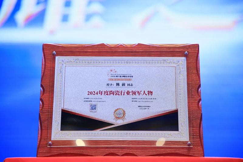 97国际磁砖依附卓越的品牌实力、品牌招呼力、品牌影响力脱颖而出,,,,,,一举斩获“2024年度陶瓷行业领军企业”,,,,,,董事长陈前荣获“2024年度陶瓷行业领武士物”。。。。。。。。